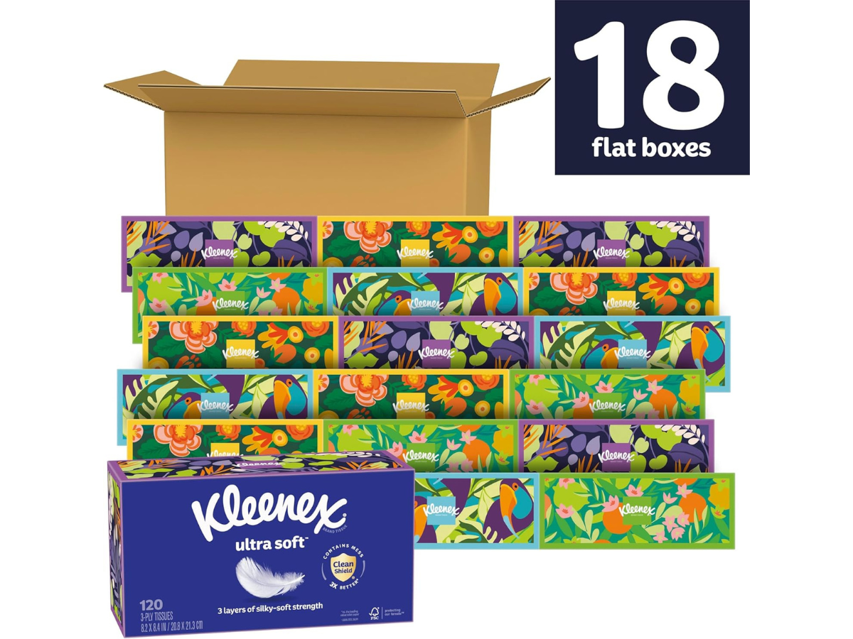 Amazon is offering 18 boxes of Kleenex tissue for $17.xx, a significant discount from the regular price of $38. This deal provides excellent value for stocking up on a household essential at more than 50% off. Ideal for home, office, or seasonal use while supplies last.