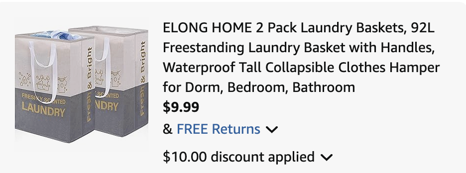 Head to Amazon and use code 7Y3BSWKD to score this Laundry Baskets 2-Pack for just $9.99, regularly $19.99!
