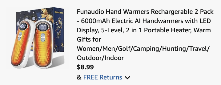 Head to Amazon and use code 9ULWLNT4 to score this Hand Warmers Rechargerable 2 Pack for just $8.99, regularly $27.99!