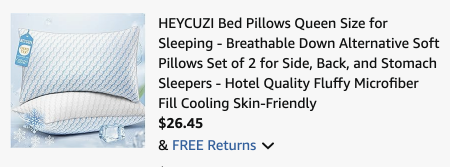Right now on Amazon, you can sore this HEYCUZI Bed Pillows Queen Size Set of 2 for just $26.45 when you clip a digital coupon and use code TI4M9NIA, regularly $134!