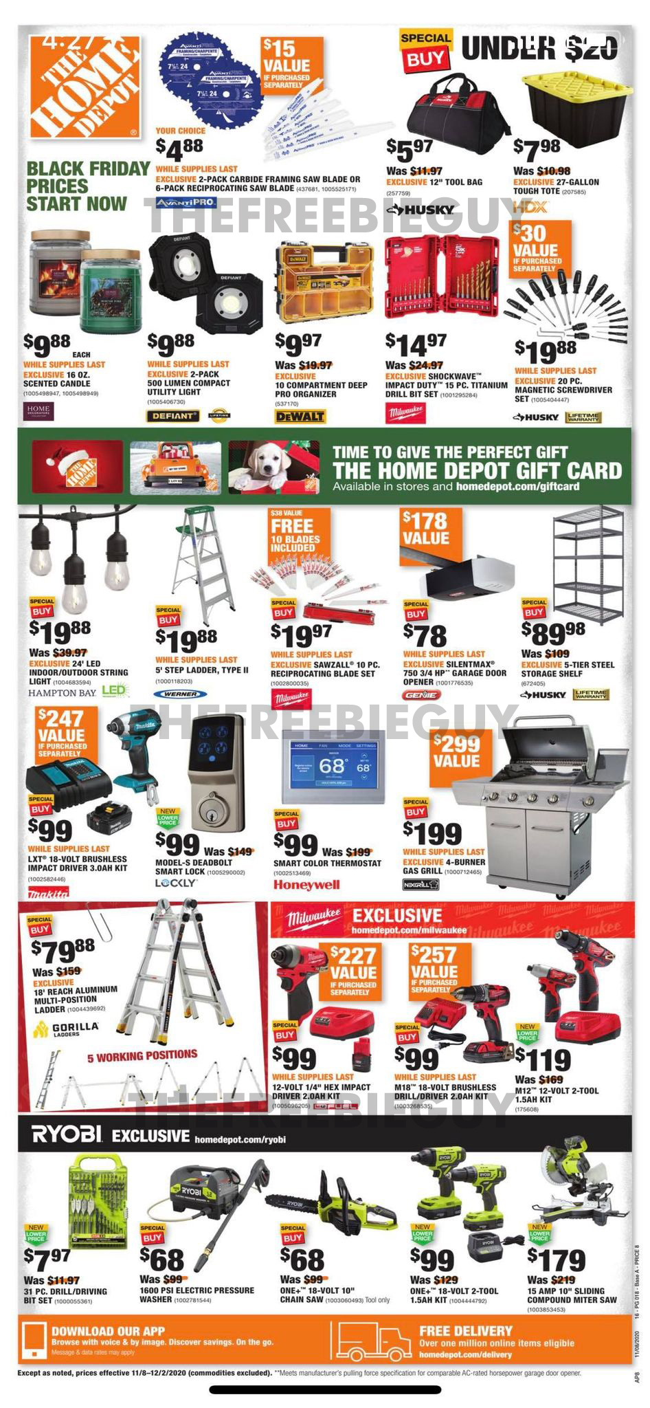 Black Friday at Home Depot starts November 8th this year! They have tons of great prices rolling out on appliance, holiday items, pet products, home improvement and more! Check out the ad scan below or download the Home Depot app to view the ad on your phone.