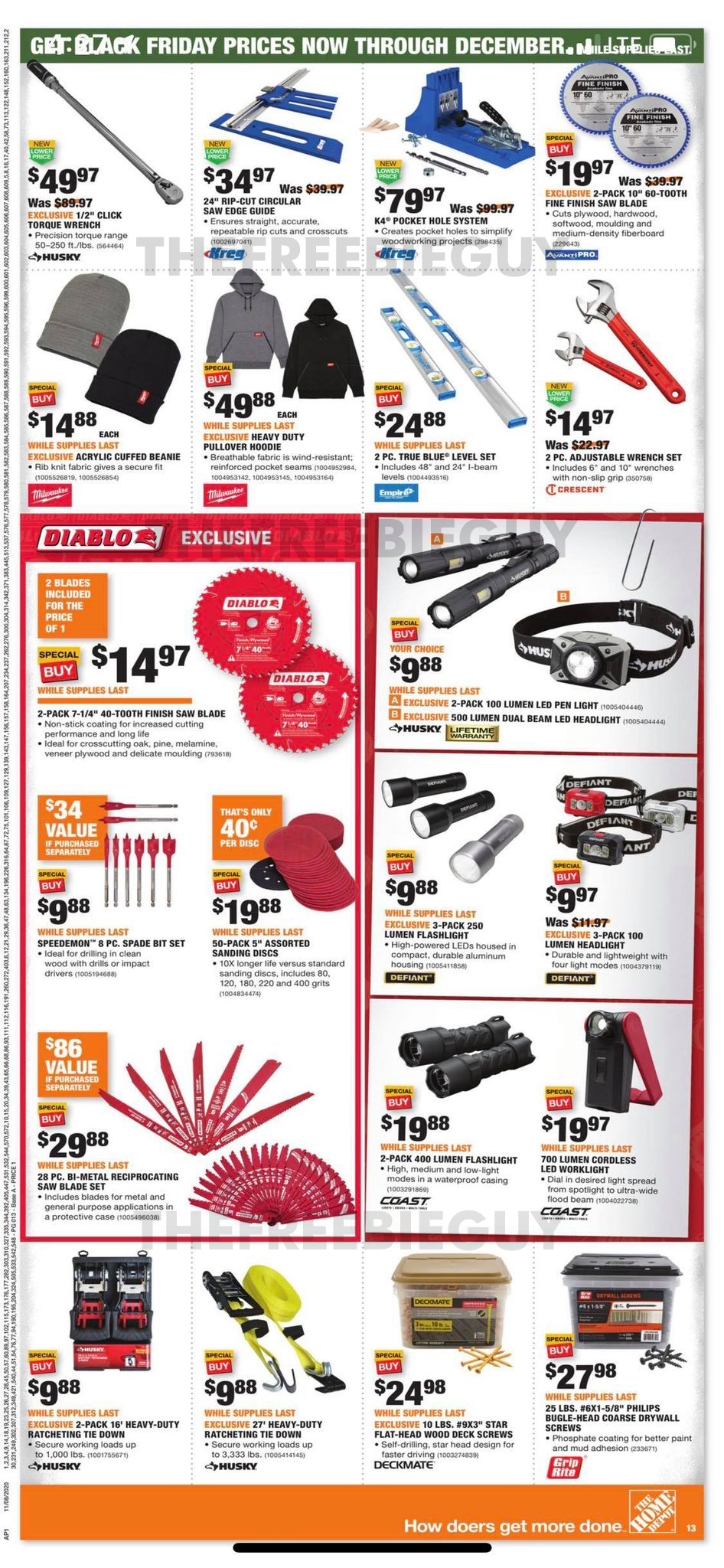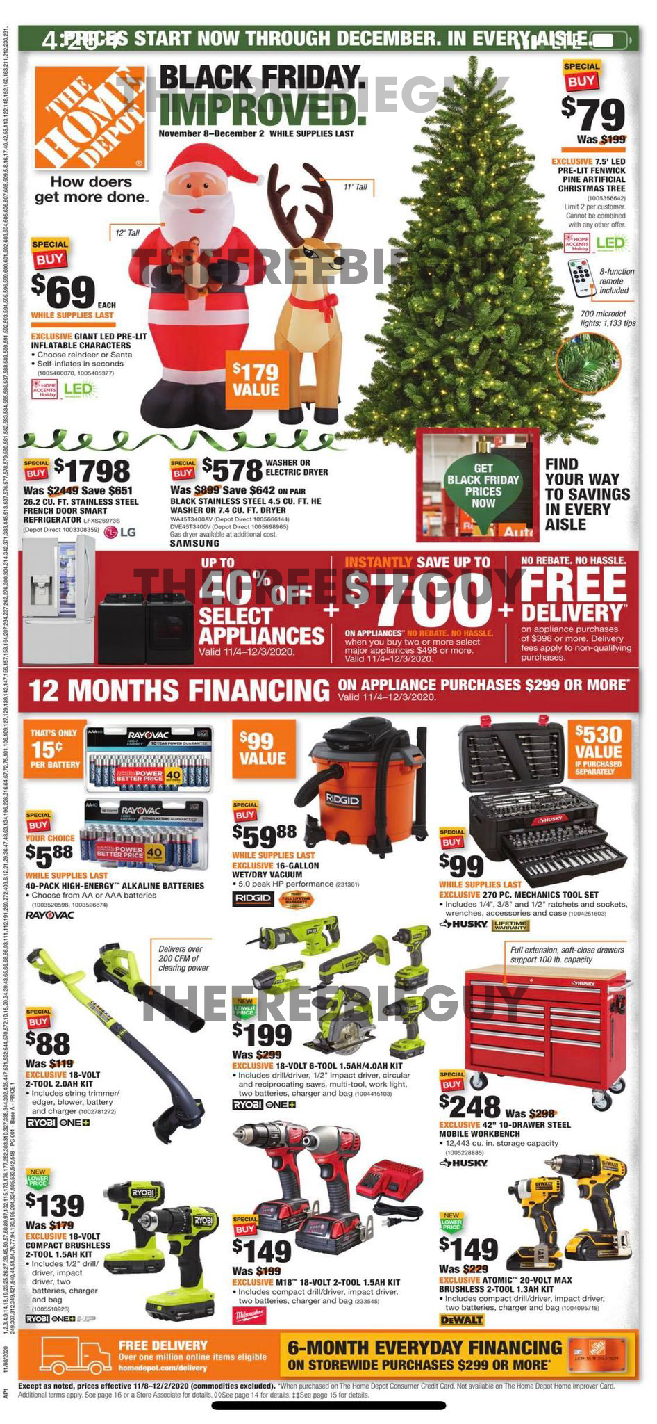 Black Friday at Home Depot starts November 8th this year! They have tons of great prices rolling out on appliance, holiday items, pet products, home improvement and more! Check out the ad scan below or download the Home Depot app to view the ad on your phone.