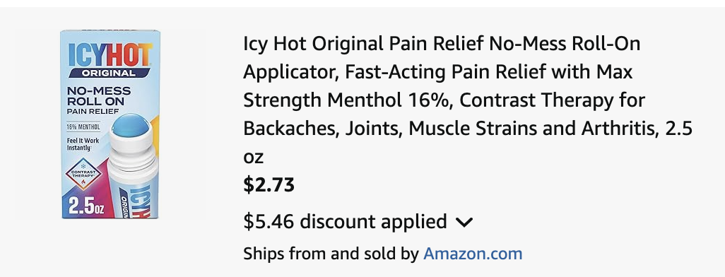 Head to Amazon where you can score Icy Hot Original Medicated Pain Relief Liquid with No Mess Applicator for just $2.xx (Reg $8.xx) when you click here first to apply a 25% discount (you don’t have to click anything else, just head back to the Icy Hot page). Then clip a $3 digital coupon and select Subscribe & Save!