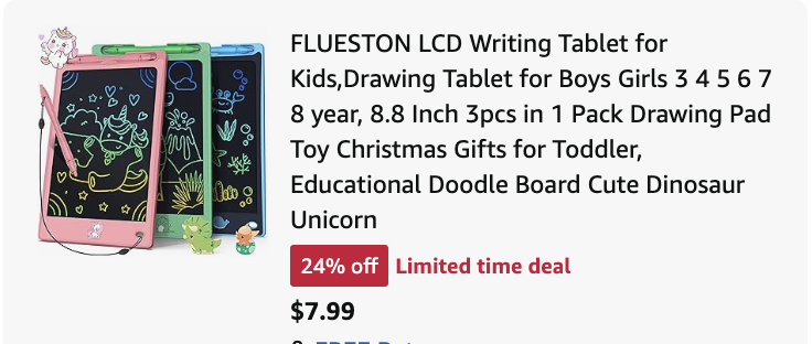 Run to Amazon where you can score this 3 Pack LCD Writing Tablet for just $7.99 with code R69PN98K at checkout! That just $2.66 each! Get it before Christmas!