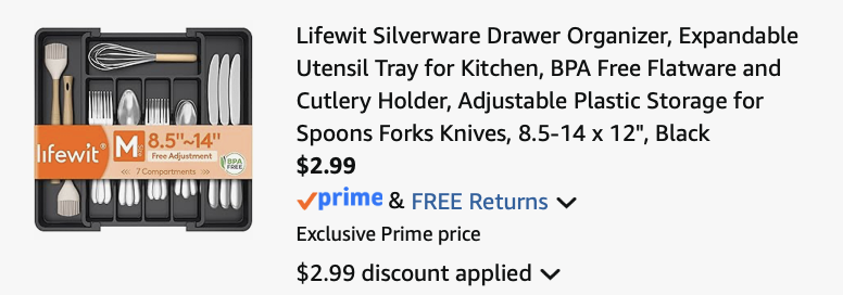 Head to Amazon to score this Lifewit Medium Silverware Drawer Organizer for just $2.99 with code X2ODOX69, regularly $9.99!