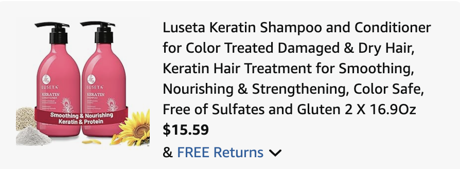 For a limited time on Amazon, scoop up this Luseta Keratin Shampoo and Conditioner for just $15.xx when you opt in for Subscribe & Save and use code 5CX6J9XV, regularly $32!
