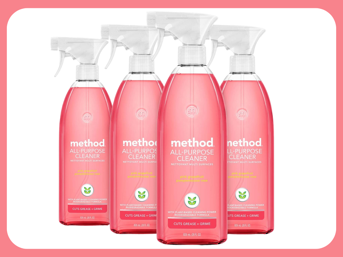Run over to Amazon and opt in for Subscribe & Save to scoop up this Method All-Purpose Cleaner Spray Pink Grapefruit 4-Pack for just $13.xx, regularly $30! Contains (4) 28-ounce spray bottles of all purpose surface cleaner.