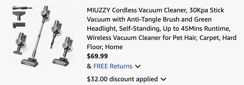 Head to Amazon to ge this MIUZZY Cordless Vacuum Cleaner for just $69.99 with code ULG2P6C3, regularly $101.99! Featuring a robust 350W brushless motor that delivers 30Kpa suction. Effortlessly lifts dust, dirt, and pet hair from carpets, hardwood, and tiles—keeping your home spotless.
