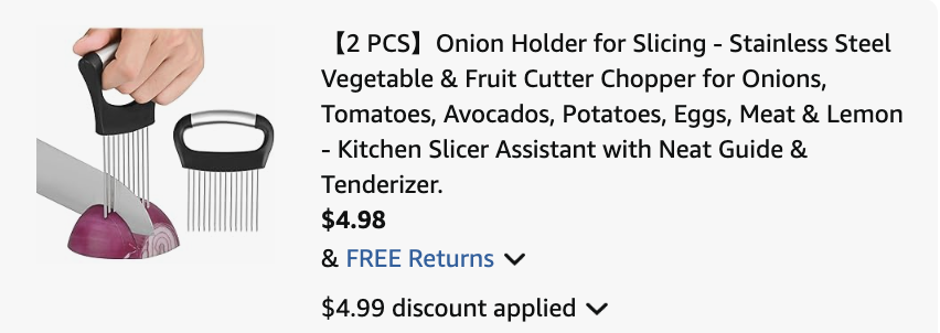 Right now on Amazon, scoop up this highly-rated Onion Holder for Slicing 2-Pack for just $4.98 with code WKHYGUS4, regularly $9.97! I ncludes 2 sizes (large & small) to perfectly handle different foods. The sharp stainless steel onion slice holder needles prevent slippage while cutting onions, tomatoes, and other vegetables evenly. Sturdy pin joints ensure durability for long-term use as your go-to kitchen gadget.