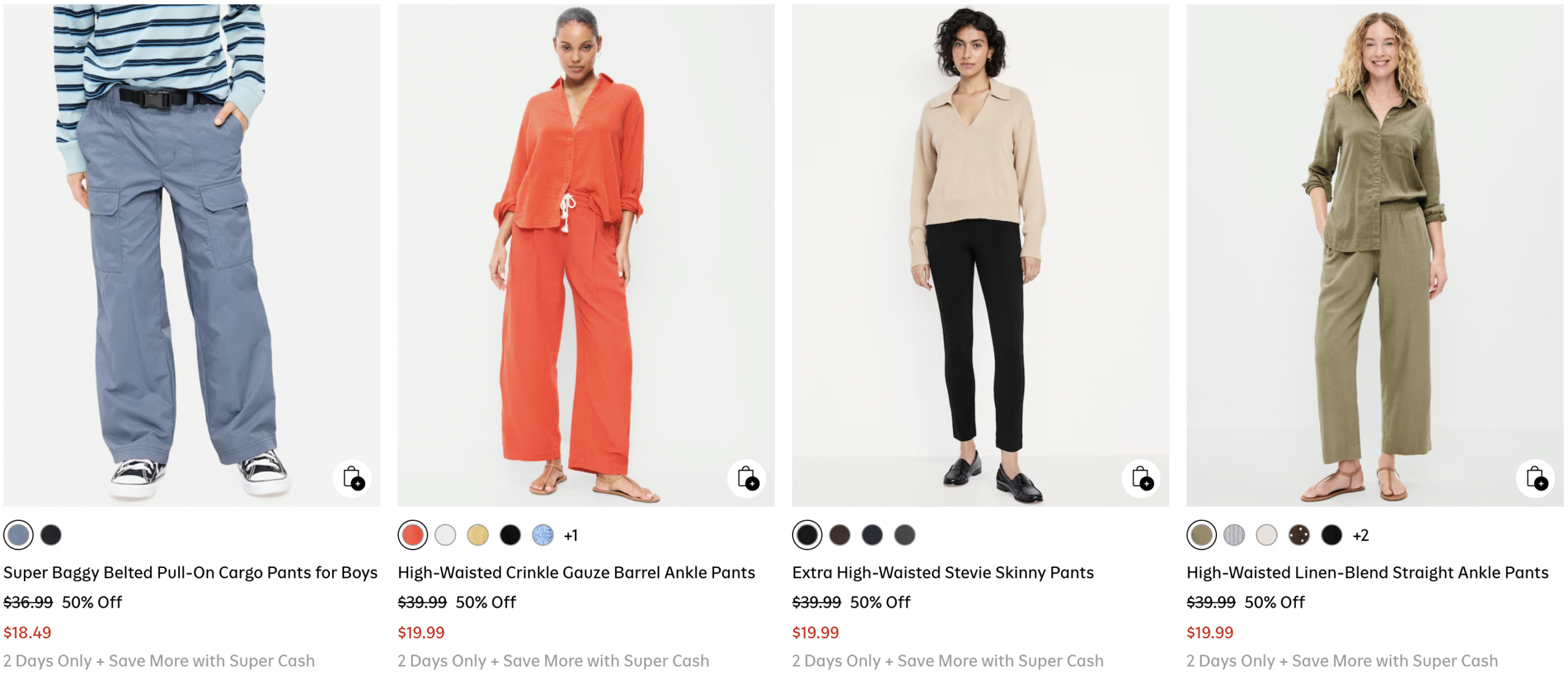 Today, Feb 28th only, score 50% off pants for everyone in the family at Old Navy. Save on sweats, leggings, trousers and more!