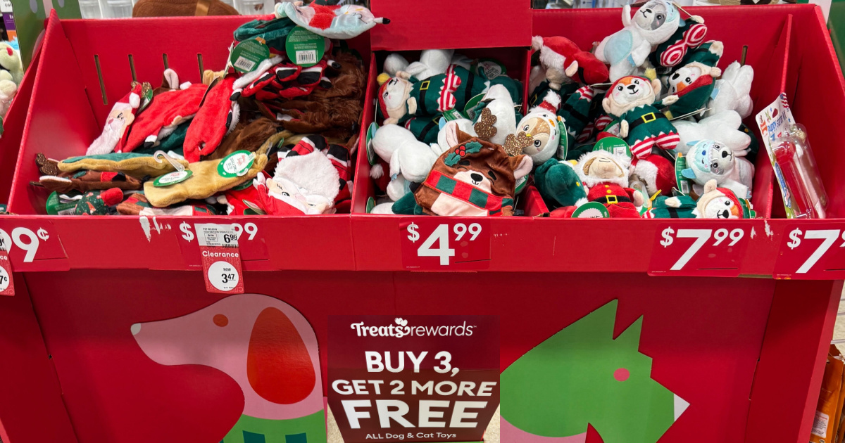 Hurry over to PetSmart where they are offering up to 50% off holiday toys for cats and dogs! Even better, they are also buy 3, get 2 free! Prices start at just 47¢ so you can grab 5 for $1.41!