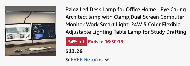 Right now on Amazon, score this highly-rated Pzloz Led Desk Lamp for just $23.26 with code 2VXEBKUS, regularly $69.99! This LED desk lamp offers 25 light combination modes with 5 color temperatures (3000K-5500K) and 5 brightness levels (20%-100%), along with night light and reading modes, catering to various lighting needs.