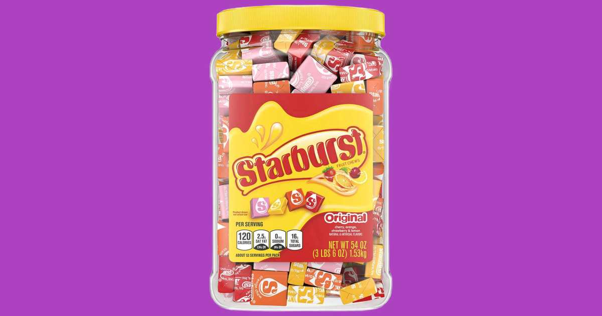 Any Starburst fans out there? Run over to Amazon to score this Starburst Fruit Chews, Original, 54 oz for just $9.98 (Reg $14.55)! This 3+ lb bulk container sells for $12.99 at Costco and that’s the lowest price we found elsewhere! Note that it shows out of stock at the moment, but you can order now at the low price, and it will ship when restocked.