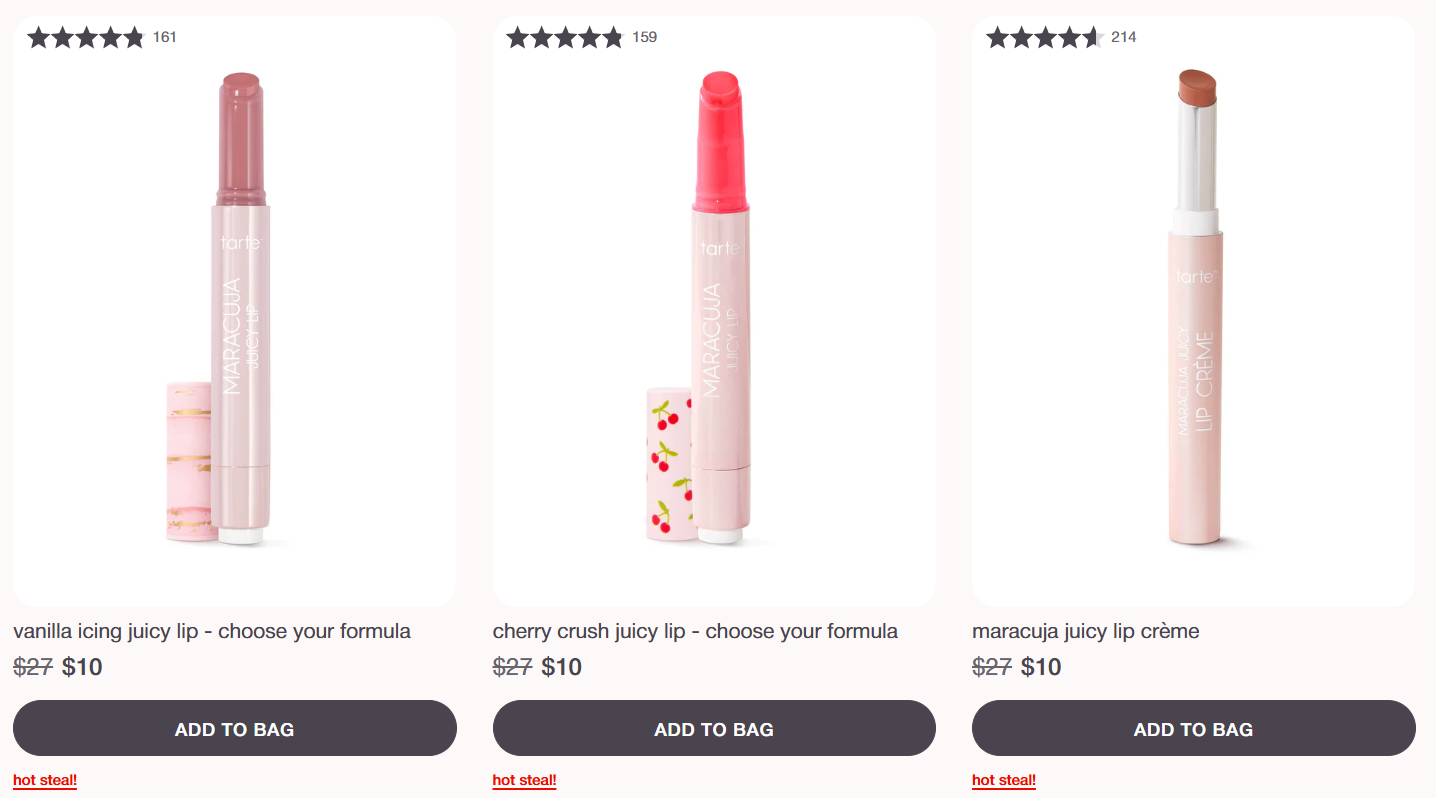 Run over to Tarte Cosmetics to score up to 65% off select items! Save on Tartelette Mascara, Maracuja Juicy Lip and so much more! Stock up on all of your favorites now! Plus, sign into your account to get a free gift when you purchase 3+ items!