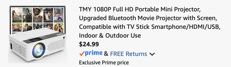 Prime Members, head to Amazon where you can score this TMY 1080P Full HD Portable Mini Projector w/ Screen for just $24.99 when you use promo code FX3ISWMO at checkout (Reg. $79.99)!