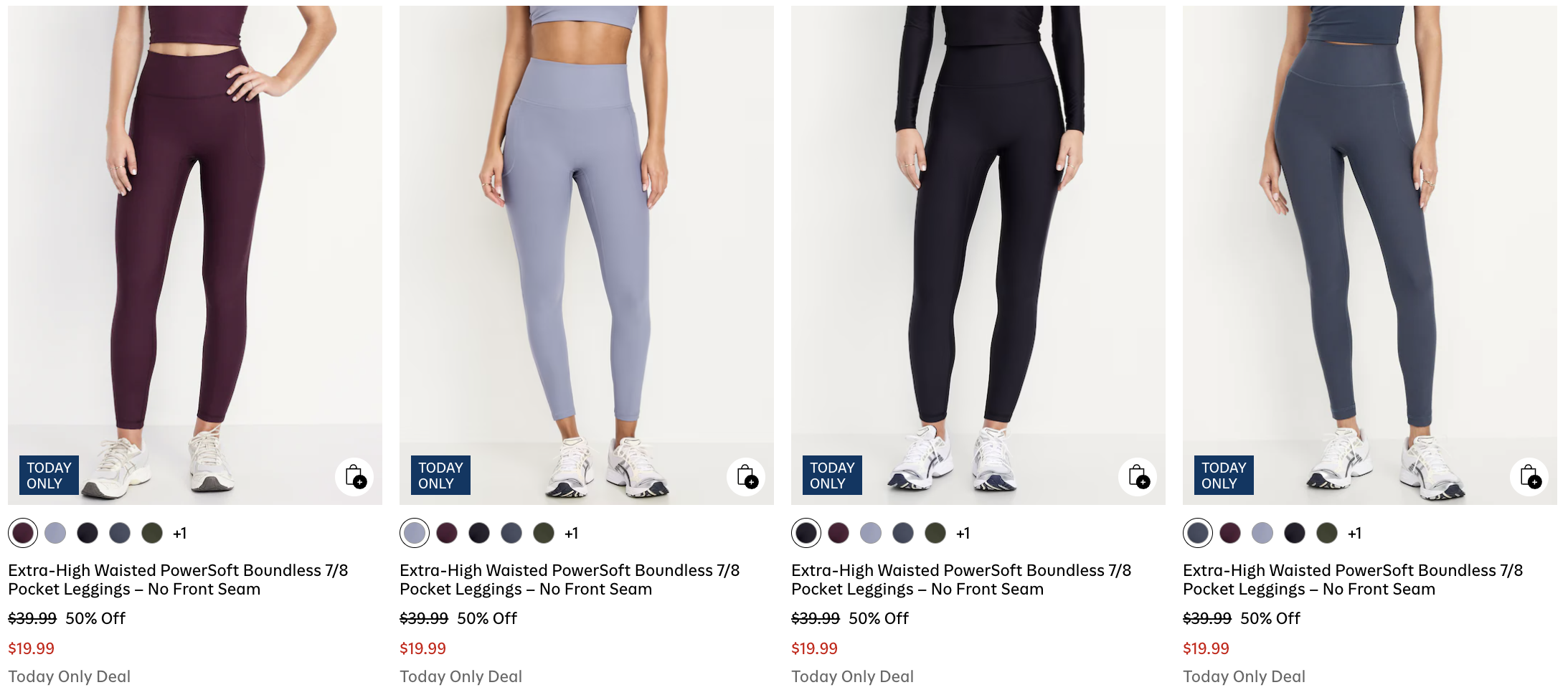 For one day only, save 50% on all Powersoft gear at Old Navy! Stock up on leggings, jackets, shorts, tanks and more! Check out a few options below.
