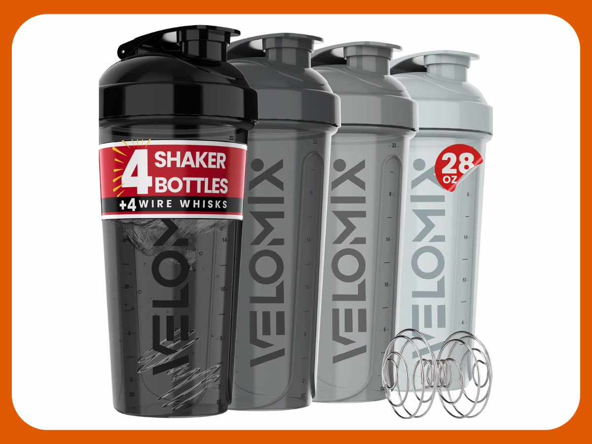 Head to Amazon to score this amazing deal on a 4 Pack of Protein Shaker Bottles by VELOMIX for just $9.xx (Reg. $27). This is a great time to grab some fresh bottles for your protein shakes! Also includes 4 wire whisk balls.
