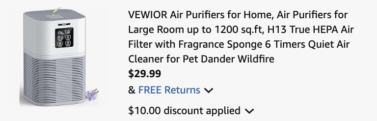 Save big on the VEWIOR Air Purifier for Large Rooms! Scoop one up for just $29.99 with code ACZWKUN6 (Reg. $59.99). Just use code XSRMA9FV at check out to save! This air purifier has great reviews and can handle pet dander.