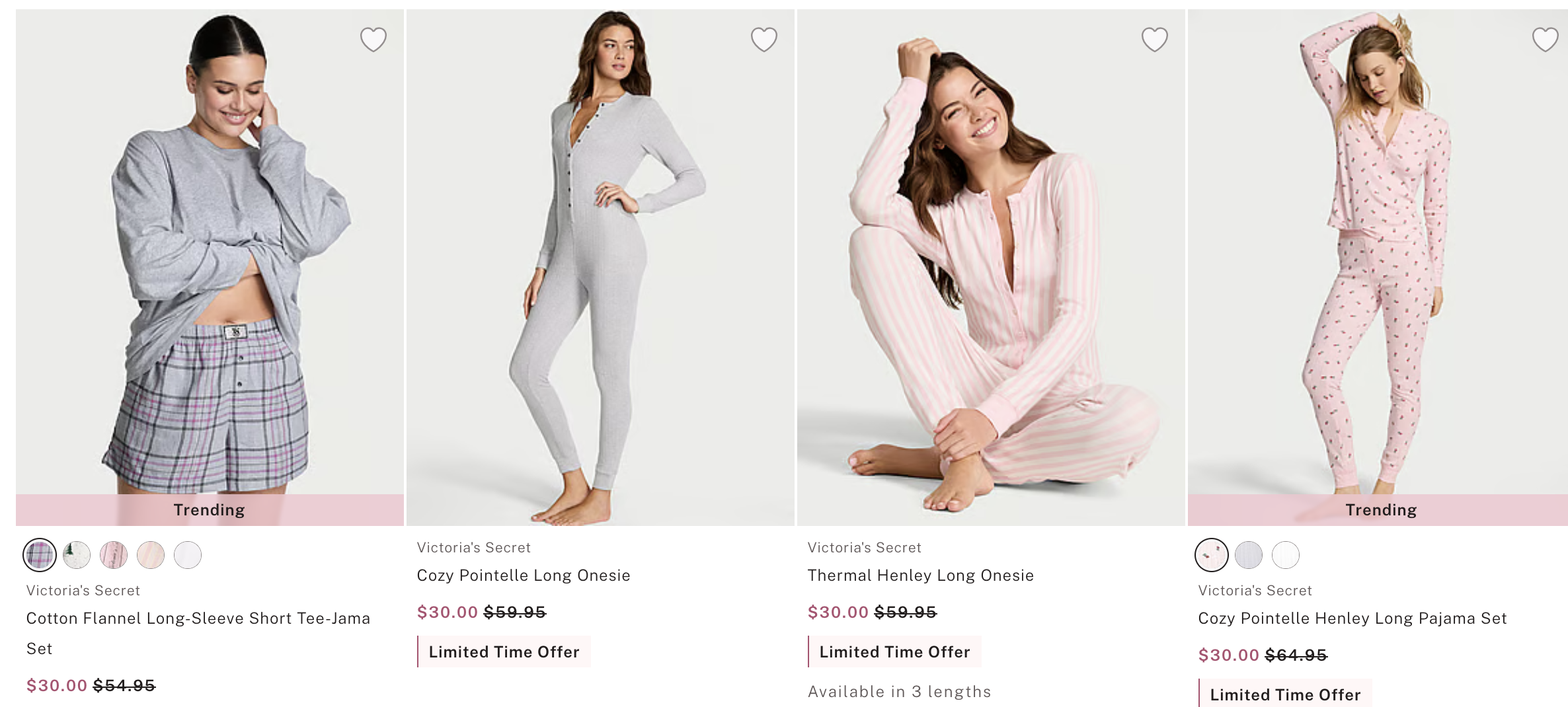 Victoria’s Secret marked down their adorable PJ sets starting at $30 (Reg. up to $69.95)! Plus score some fluffy VS slippers for $29.95 (Reg. $40) while you’re adding gifts to the cart. Prices are as marked so no promo code is needed! There are tons of styles, colors, and patterns to choose from!